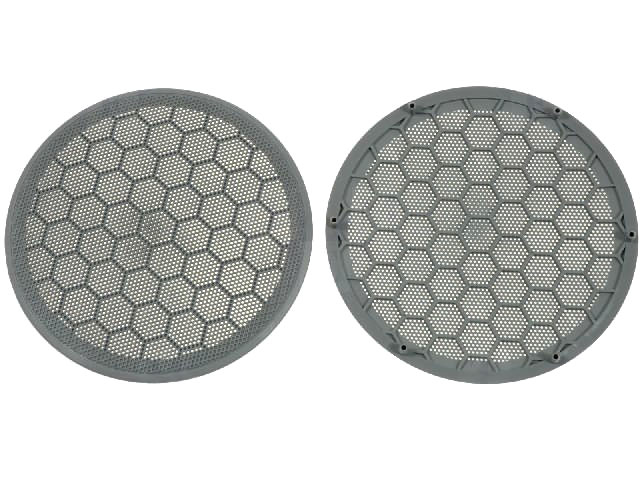 Grotelės garsiakalbiams. 172 mm diametro. Pilkos spalvos. Naudojamos duryse.