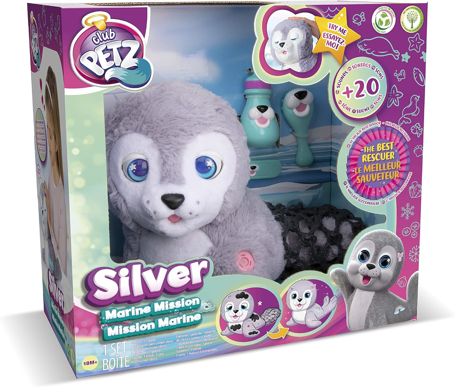 Linksmas ruoniukas, kurį galima puošti, bei šukuoti. Nepilna komplektacija, nes nėra buteliuko. Reaguoja į aplinka, į garsus.