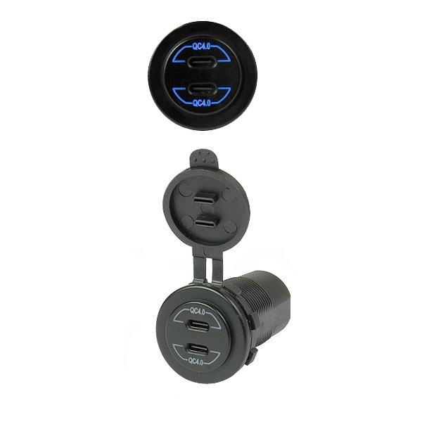 Automobilinis USB su dviem lizdais: QC4.0 PD Type USB C 3.0A – skirtas greito įkrovimo įrenginiams. Power Delivery (PD) technologijos dėka galite įkrauti nešiojamąjį kompiuterį, planšetinį kompiuterį ar išmanųjį telefoną maksimalia galia. Integruotas integrinis grandynas atpažįsta automatiškai prijungtą įrenginį, kuris įgalina efektyvų ir optimalų įkrovimo procesą. Maitinimo šaltinis, skirtas naudoti transporto priemonėje, priekaboje ar sunkvežimyje.